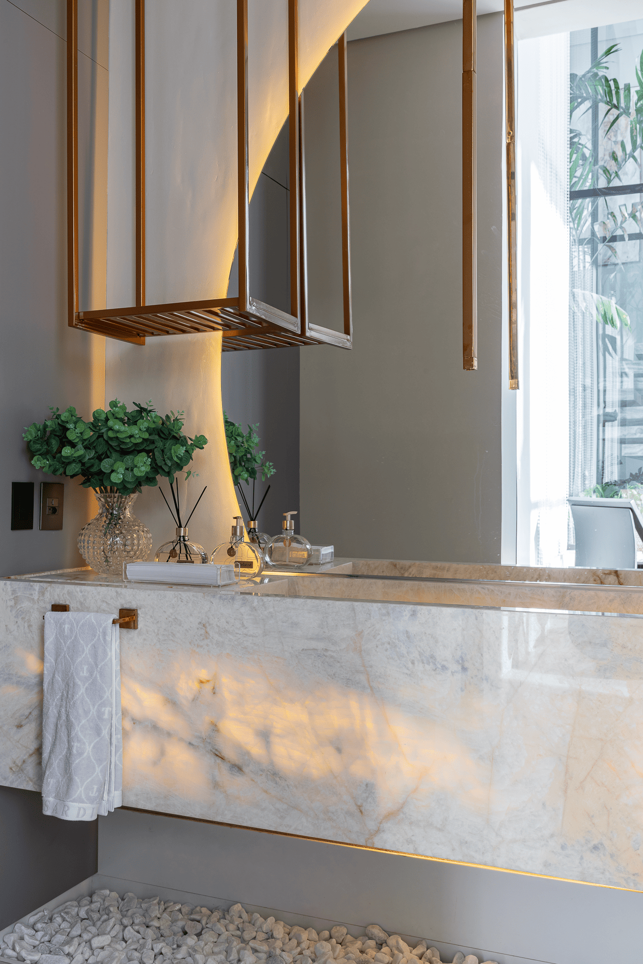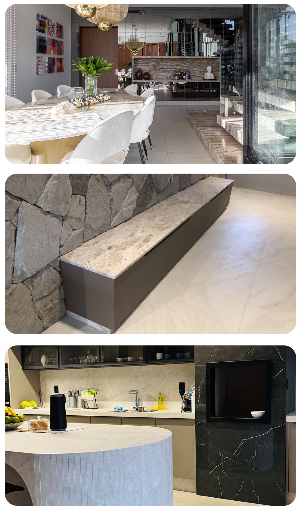 Aqui na Baluarte você encontra tanto pedras naturais (como granitos, mármores e quartzitos) quanto industrializadas (como quartzos e lâminas ultracompactas), além de materiais exóticos e importados. Assim, conseguimos indicar a opção ideal para o seu projeto.